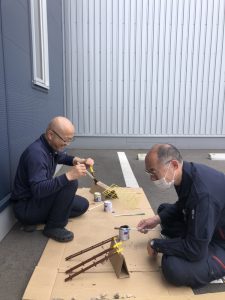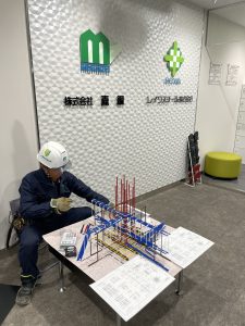 鉄筋のミニモデルを仕事終わりや仕事の合間を縫って組立を行いました。