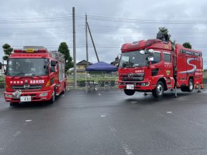 消防車や、自衛隊の展示もあり、撮影に協力していただきました。